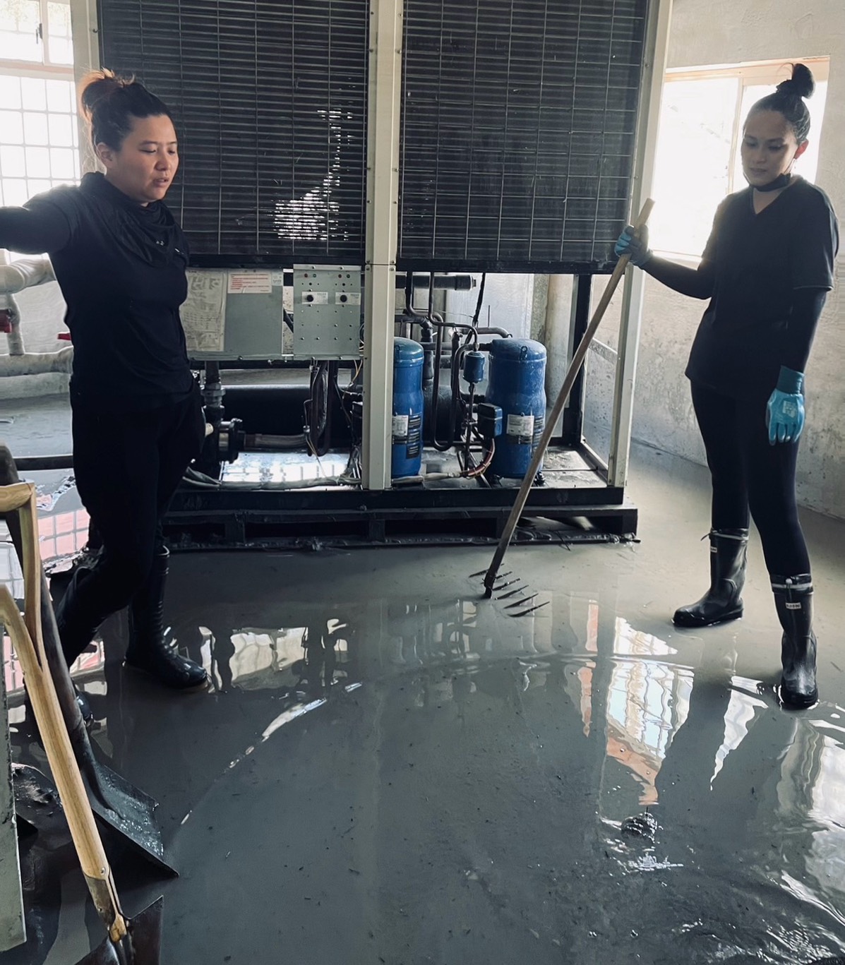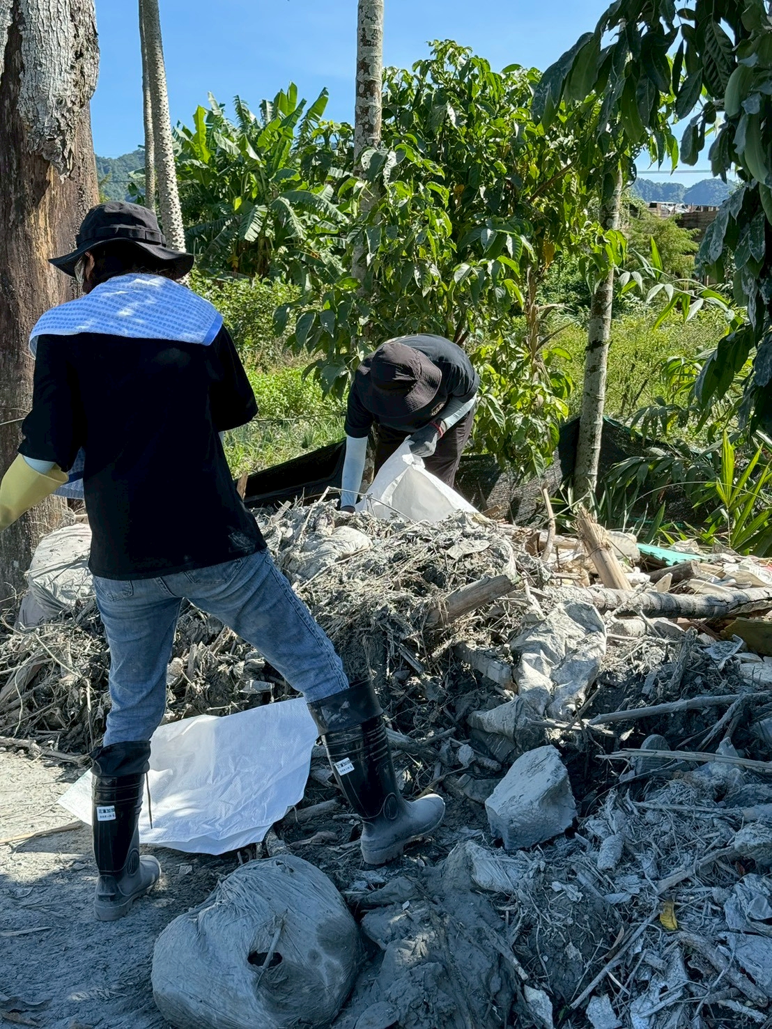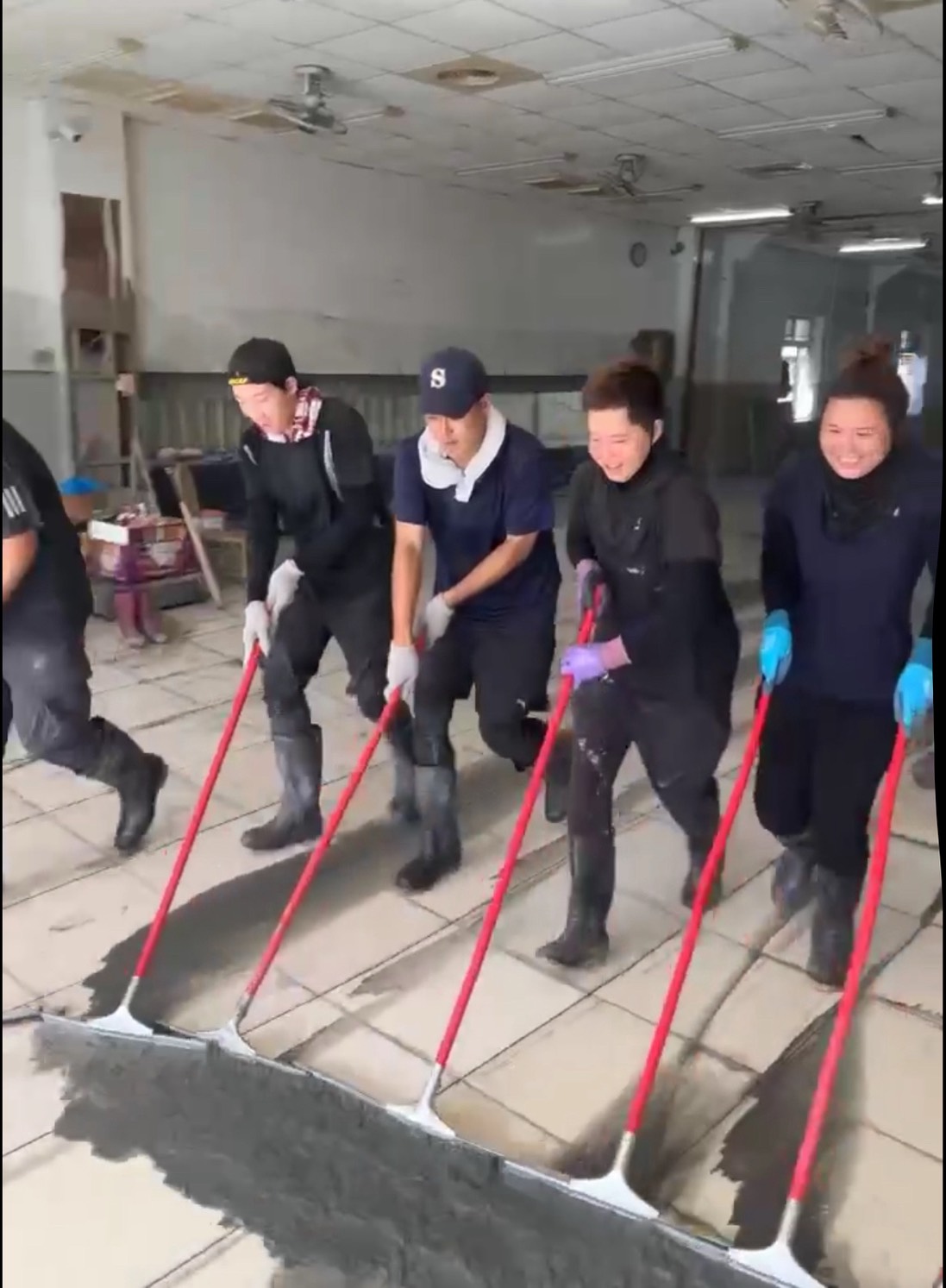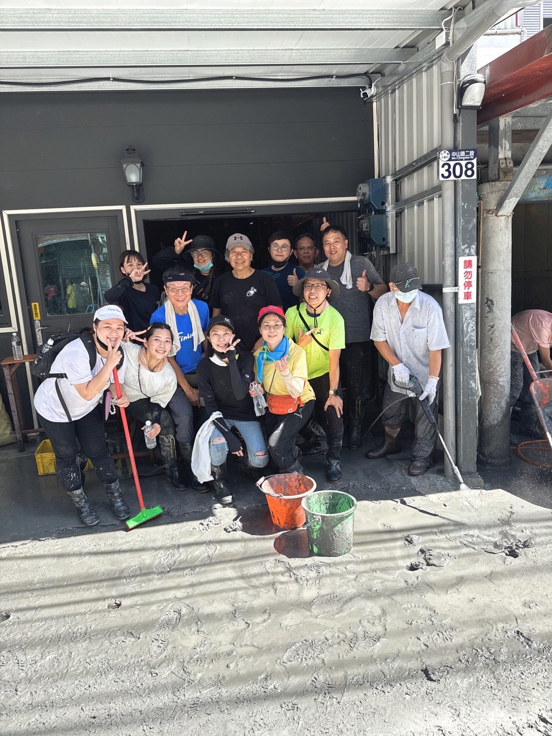 抵達現場後,滿目瘡痍的景象映入眼簾:堆積如山的泥土、坍塌的房舍、漫天飛舞的灰塵,以及物資雖多但人手短缺的困境。夥伴們全副武裝,穿梭於重災戶住家與物資發放站之間,親手鏟土清泥、搬運補給,用汗水取代言語,以實際行動撐起災後重建的希望。